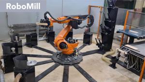 RoboMill - robot carpenter, all-in-one robotic solution for the machining of materials and components The robot performing the