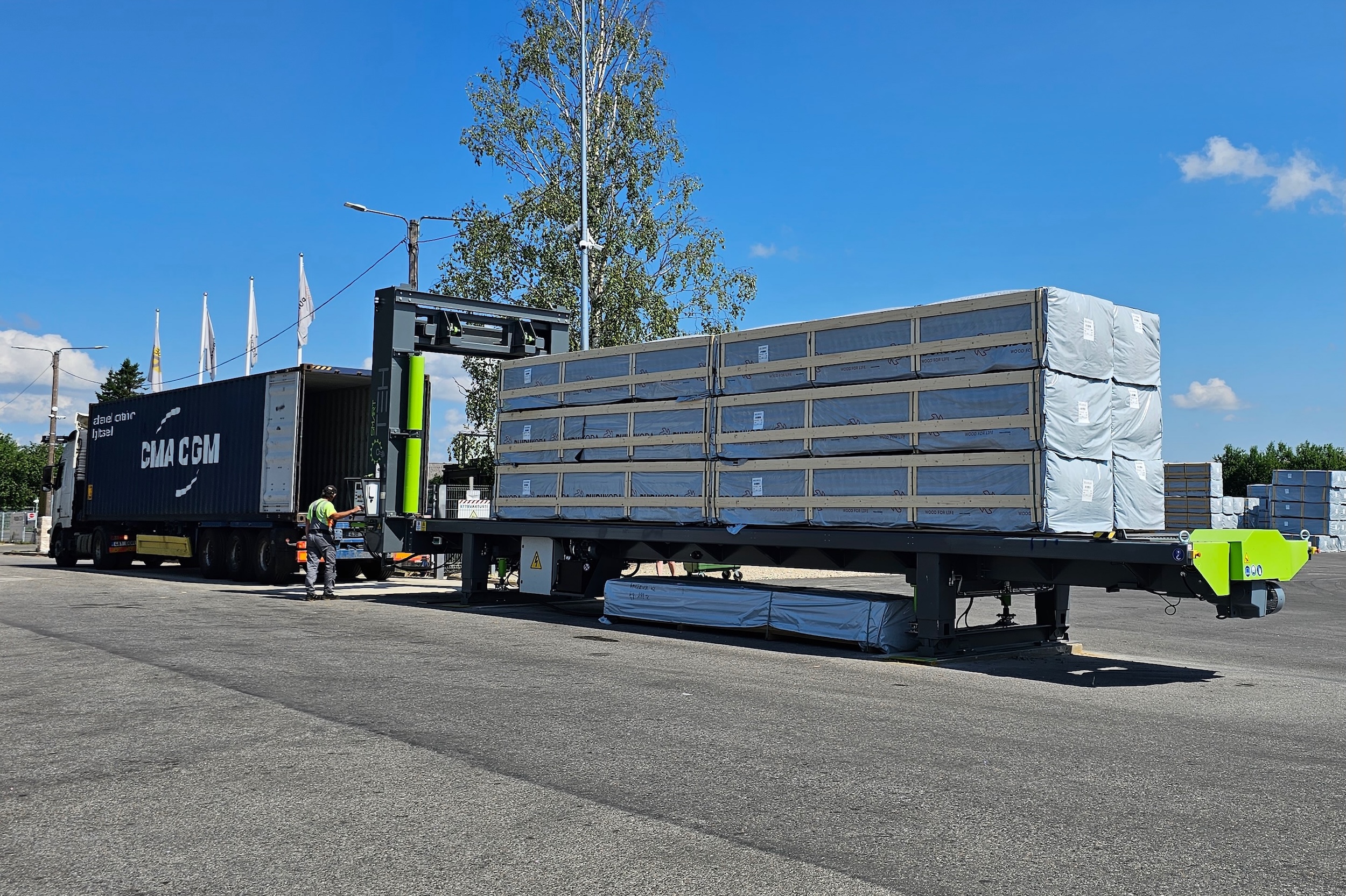 Built for reliability and efficiency, the system easily handles loads of up to 30,000 kg. Its sliding plate mechanism loads and unloads 20-foot, 40-foot, and 45-foot containers, as well as standard truck trailers – all with just one operator.