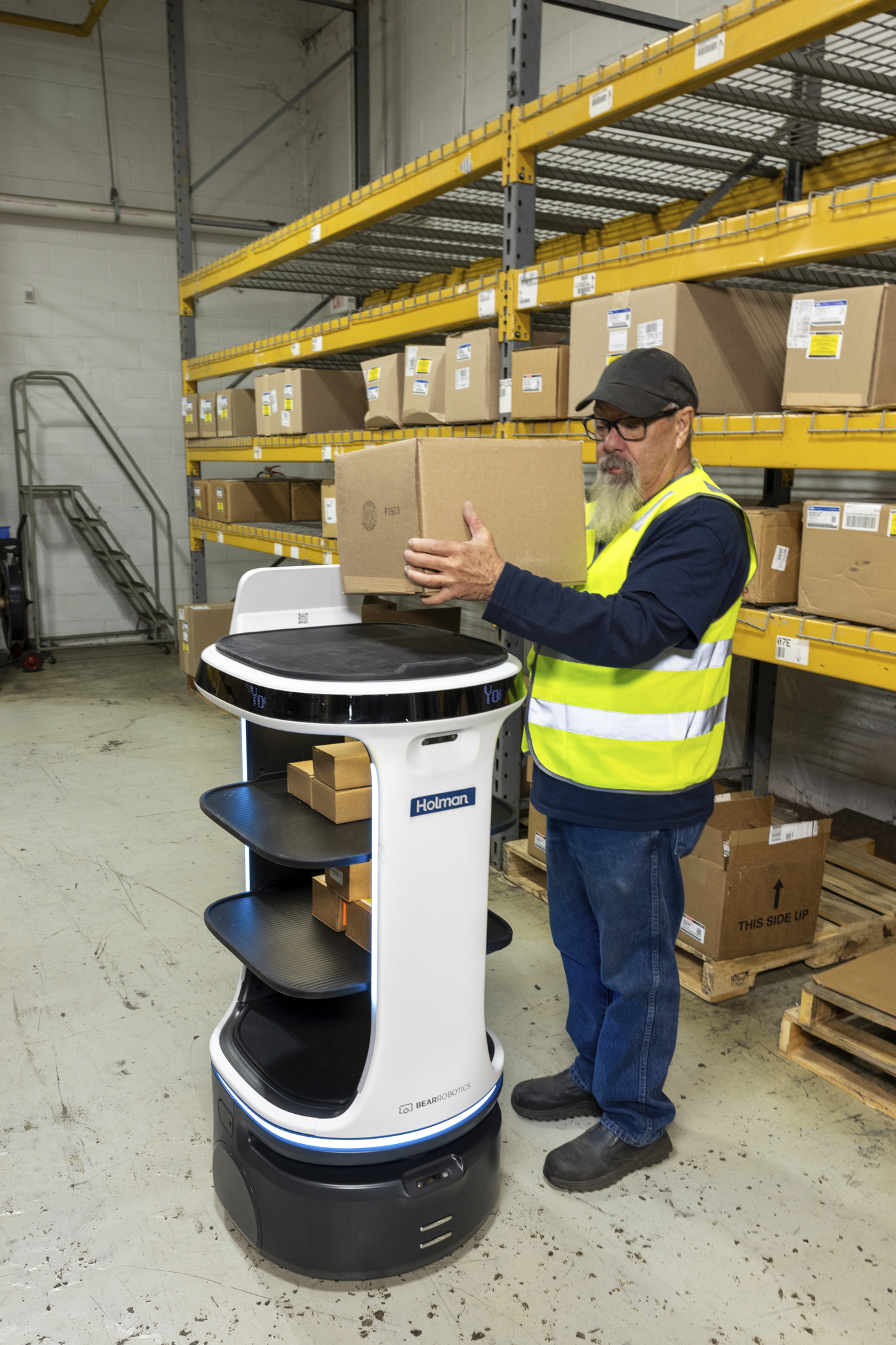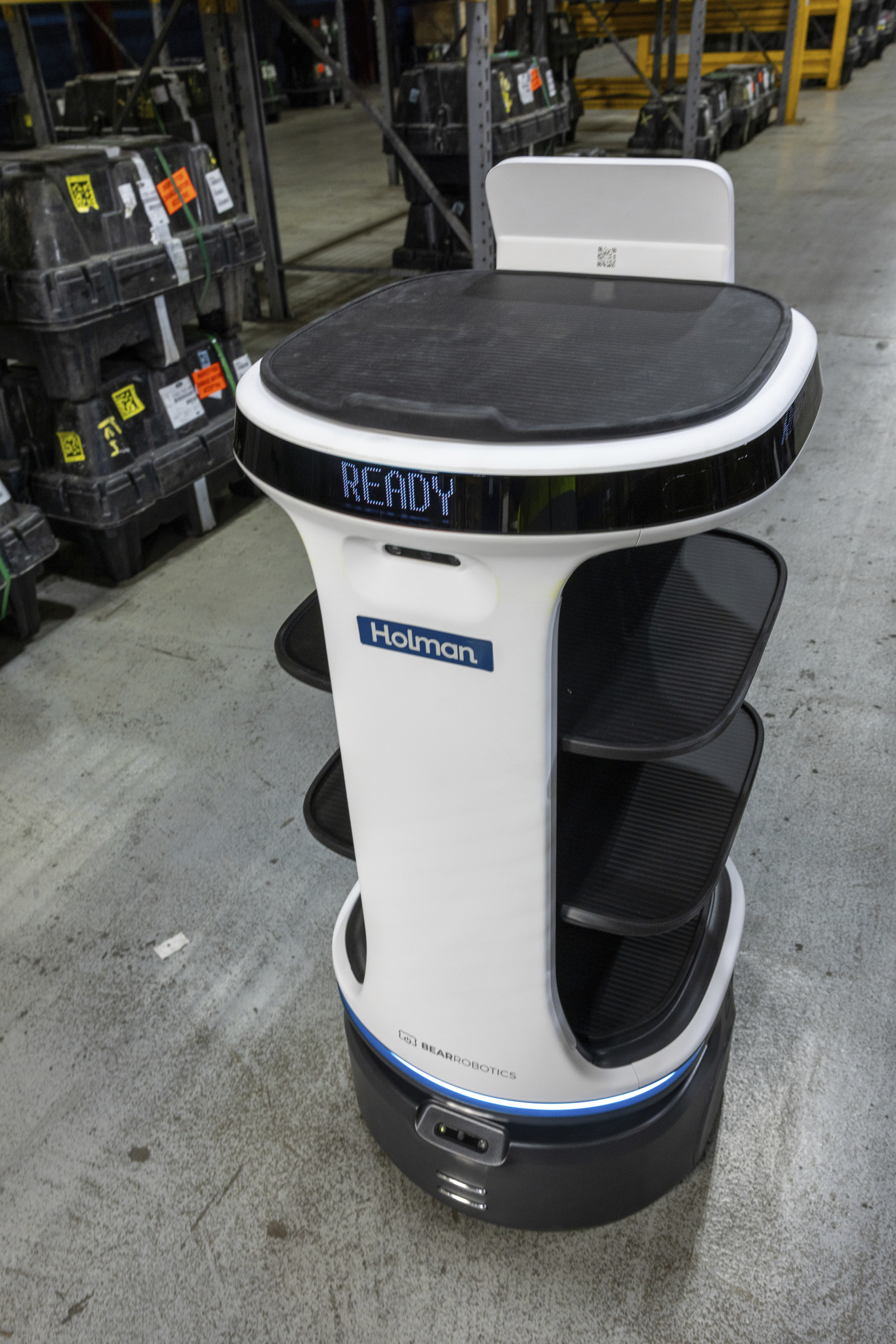 This Autonomous Service Robot is an advanced indoor mobile platform designed to autonomously transport items, supplies, or containers through dynamic, high‑traffic environments with efficiency and stability. It offers adjustable multi‑tier trays that support a total payload of up to 88 lbs (40 kg), allowing flexible configuration for tall objects, packages, or multi-bin transport needs. Powered by self‑driving technology with patented near‑zero blind‑spot detection, it navigates narrow corridors and crowded spaces while intelligently selecting alternate paths and precise parking positions. Its enhanced suspension system enables smooth movement across varied indoor surfaces and transitions—including thresholds up to ½ inch and ADA‑compliant ramps—while maintaining stability for sensitive or fragile items that require careful handling. The robot incorporates responsive perimeter lighting, a clear dot‑matrix display, and audio cues to communicate status and improve visibility in shared workspaces. With 10–12 hours of runtime, easy wall‑charging, and a 4–6 hour recharge cycle, it operates continuously through long shifts and can synchronize with multiple units for coordinated fleet performance in complex workflows. Engineered for reliability and efficiency, this high‑capacity AMR is ideal for supporting staff and automating repetitive indoor transport tasks across sectors such as hospitality, corporate services, healthcare support, retail logistics, and facilities operations