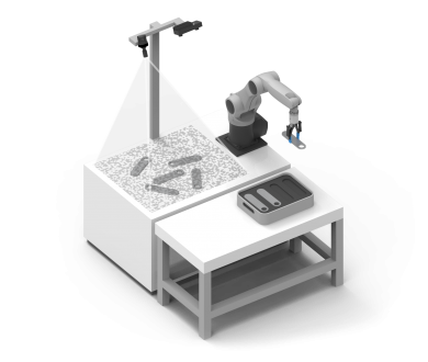 The rc_reason CADMatch Module enables a robotic system to reliably detect, localize and pick objects from unmixed load carriers, fully independent of the object‘s position and orientation.