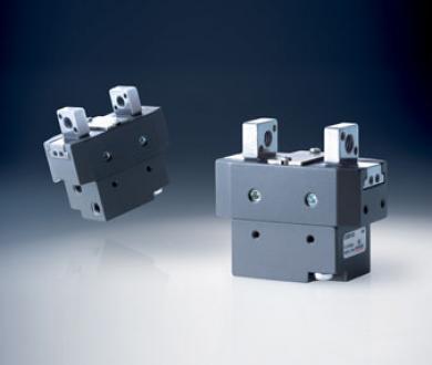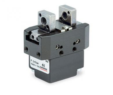 Series CGSP grippers, available in 4 sizes (20, 25, 32 and 40), are parallel and double-acting, self-centering and guided by means of a T-shaped sliding guide. Thanks to the materials and surface coating used, the gripper offers high reliability. Moreover, the internal force transmission system is protected against impurities' entrance through a steel cover, so the gripper can also be used in dusty environments.