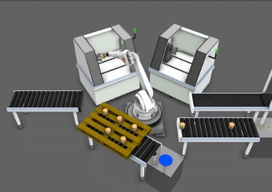 Machine tending refers to a robot overseeing a machine, for example a CNC machine. A typical machine tending application consists of a robot loading and unloading the parts while the machine operates on them.