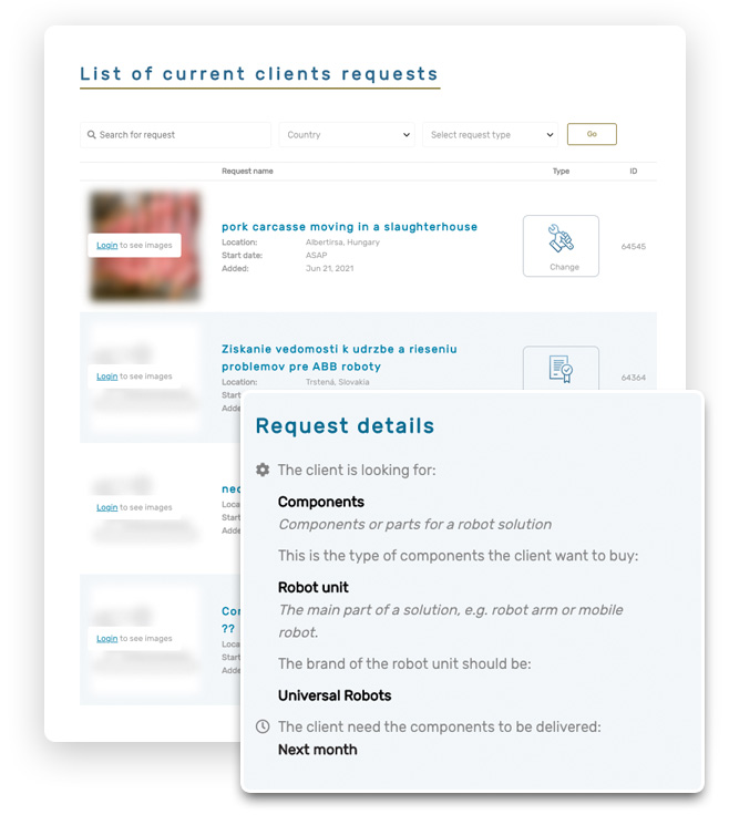 You’ll get access to a growing database of customers requesting offers on everything from robots to components, maintenance services, training, and much more.